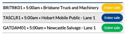 The auction title should describe this for you, and the ‘Enter Sale’ buttons are colour-coded.